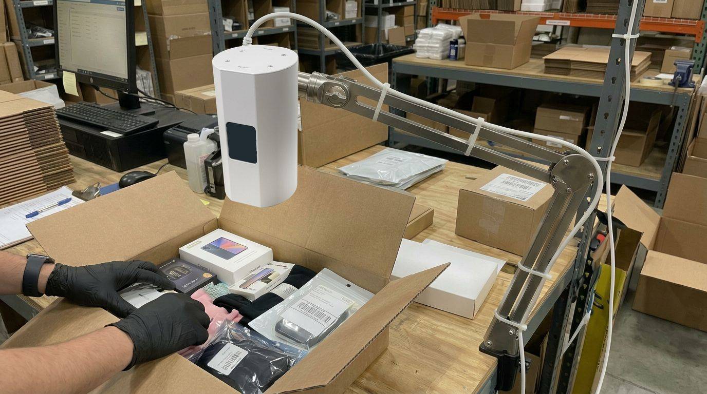 Posicione seu celular fixo na mesa de separação, com a câmera apontada para a área de embalagem.